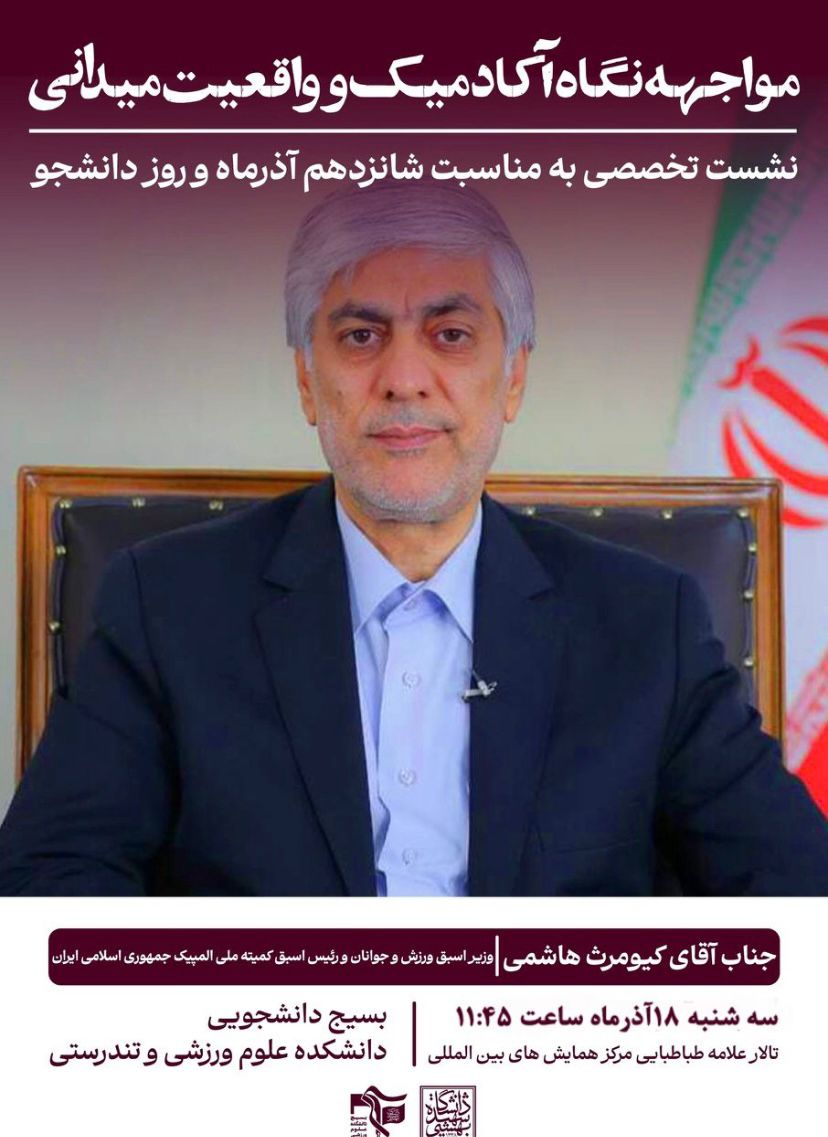 مواجهه نگاه آکادمیک و واقعیت میدانی در نشست روز دانشجو با جناب آقای کیومرث هاشمی حضور وزیر سابق ورزش و رئیس اسبق کمیته ملی المپیک