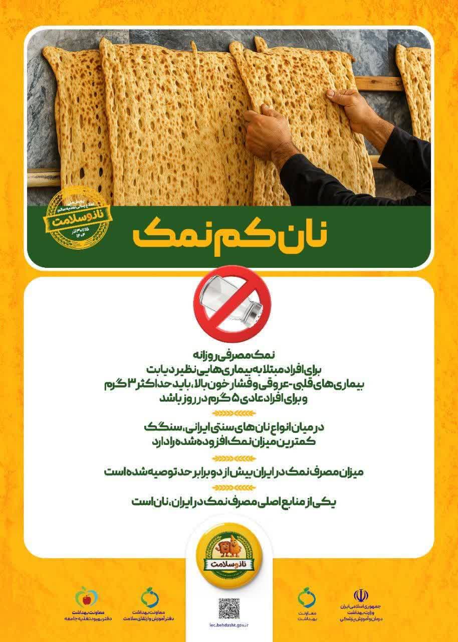 پویش ملی اطلاع رسانی تغذیه سالم 1404 با محوریت انتخاب نان سالم از 15 تا 30 آذرماه برگزار می گردد