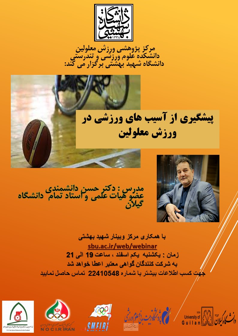 دانشکده علوم ورزشی و تندرستی با همکاری مرکز پژوهشی ورزش معلولین وبیناری را با عنوان «پیشگیری از آسیب های ورزشی در ورزش معلولین» با حضور دکتر حسن دانشمندی، استاد تمام دانشگاه گیلان، به عنوان مدرس در تاریخ یکم اسفند ماه 1400  ساعت 19 الی 21برگزار می‌کند.