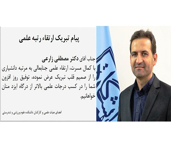 پیام تبریک ارتقاء رتبه علمی دکتر مصطفی زارعی