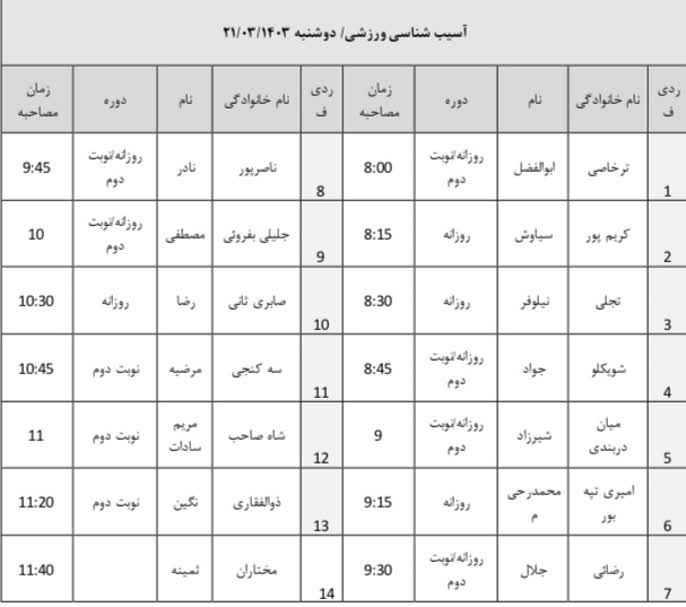 زمان بندی حضور متقاضیان رشته آسیب شناسی و حرکات اصلاحی- دوشنبه 21 خرداد​​