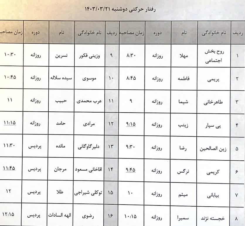زمان بندی حضور متقاضیان رشته رفتارحرکتی -دوشنبه 21خرداد