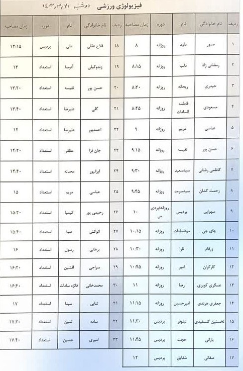 ​​​​​​​زمان بندی حضور متقاضیان رشته فیزیولوژی ورزشی- دوشنبه 21 خرداد